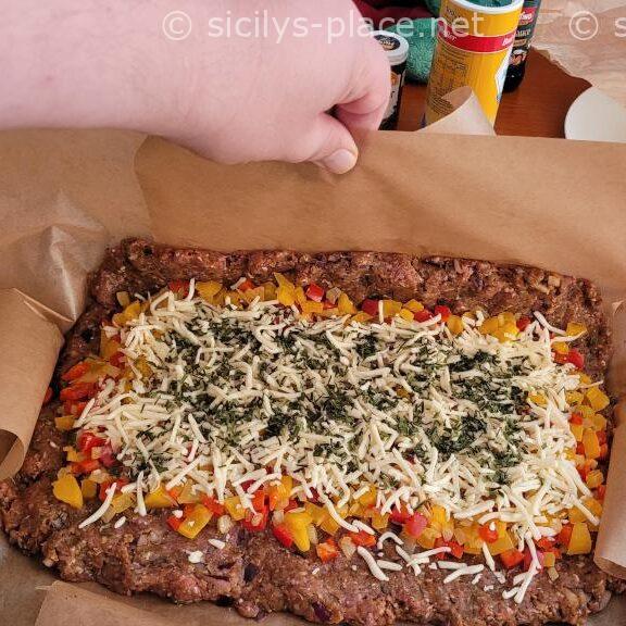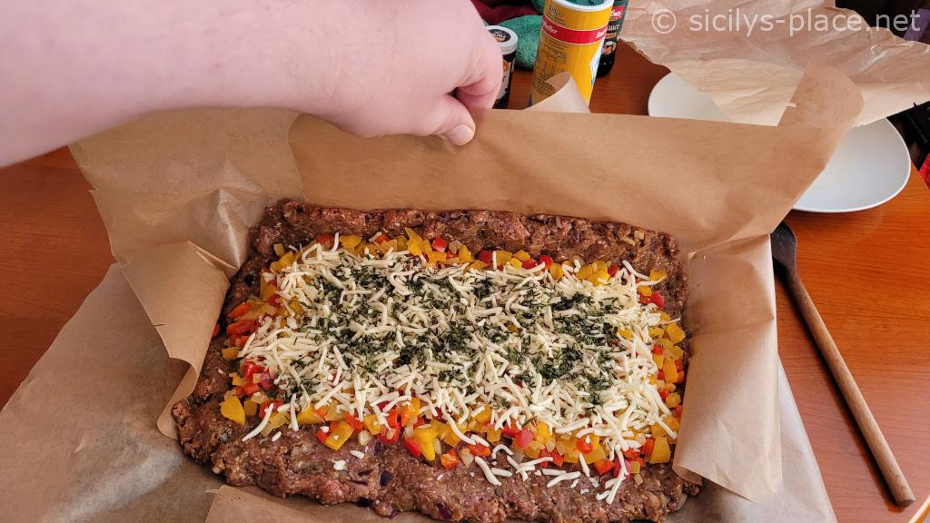 - Cover the meatloaf with baking paper on top, press down slightly.