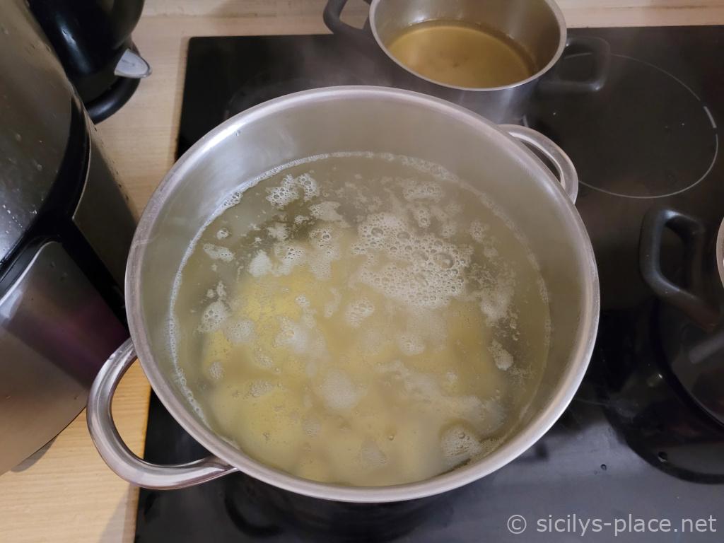 - Boil the potatoes for 10 minutes. After 6 minutes, add the broccoli.