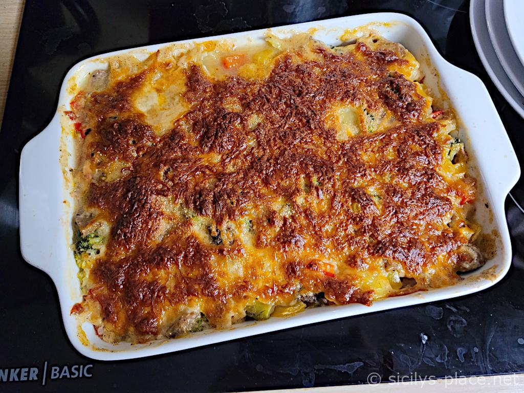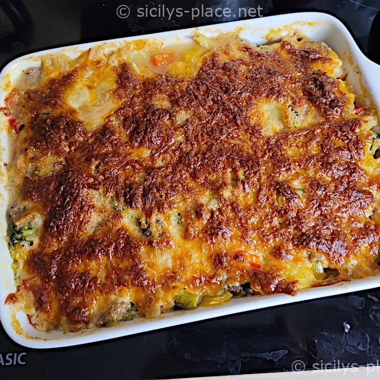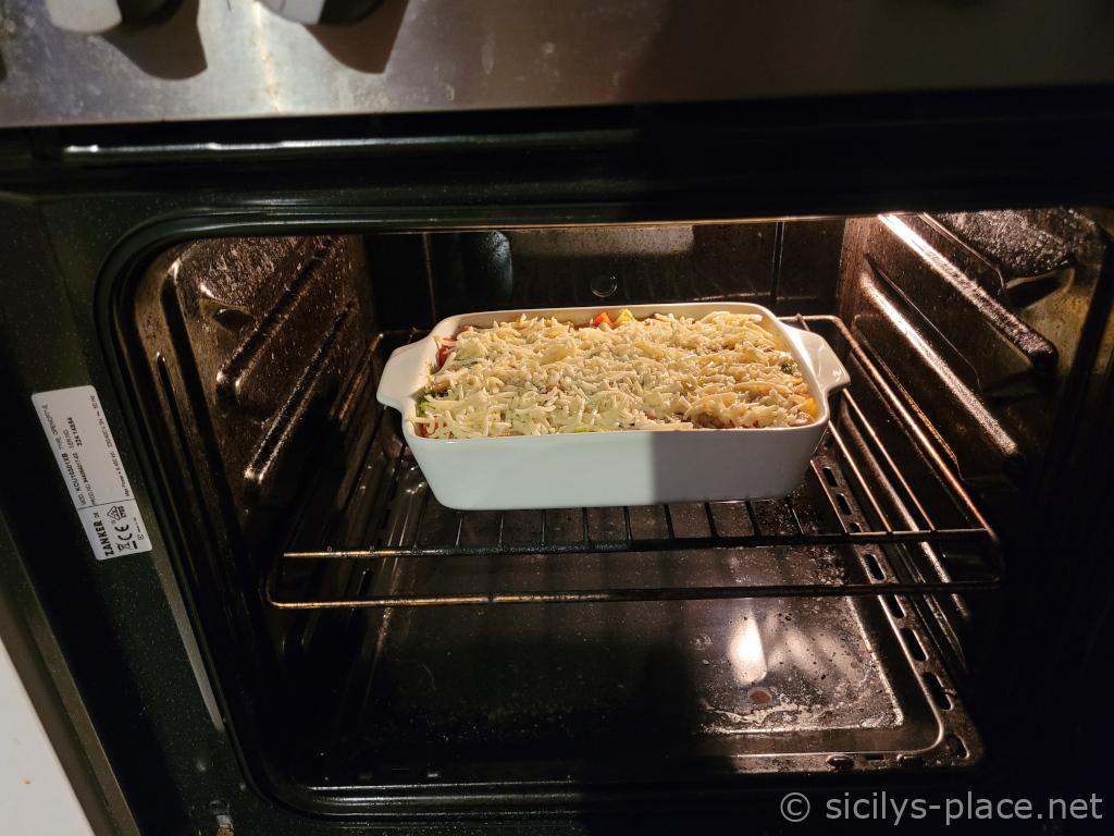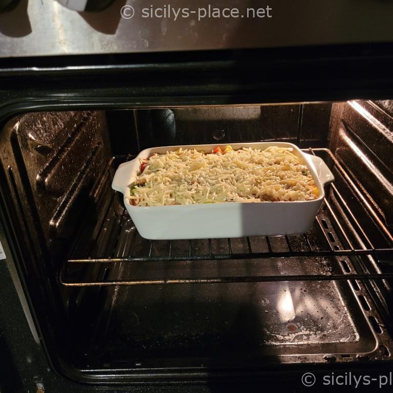 - Put the dish into the preheated oven and bake it for 30 minutes at 200°C (390°C).