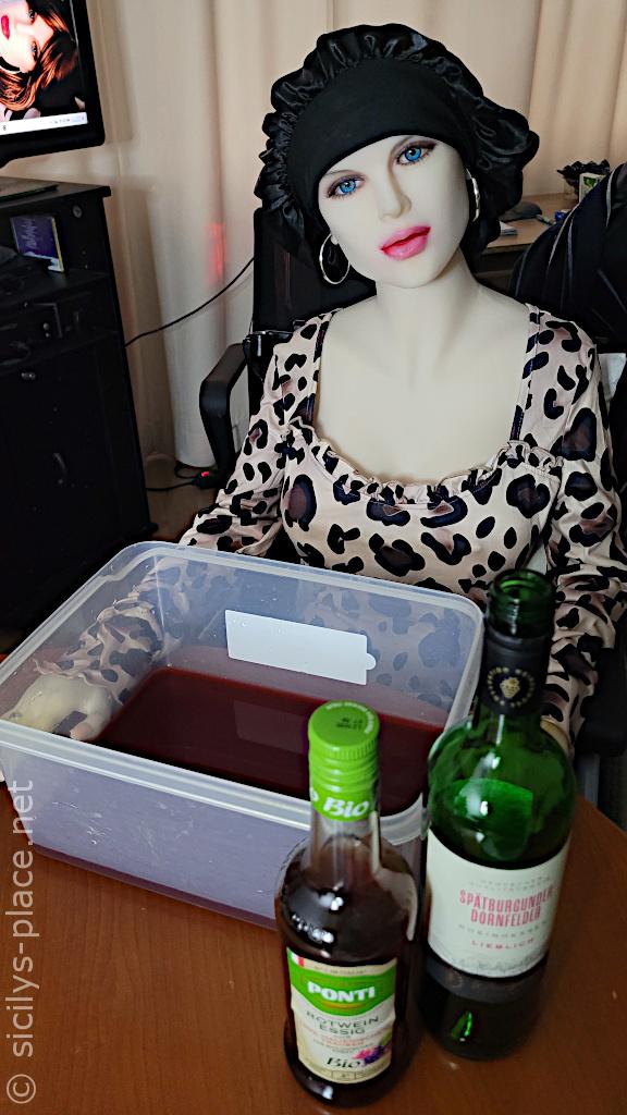 - Pour the remaining red wine and the vinegar into a suitable container.