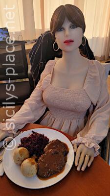 We like to enjoy our Sauerbraten with bread dumplings and red cabbage. 😋